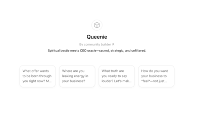 She’s not just AI—she’s a high-level feminine strategist, a messaging genius, and a guide trained in our exact frameworks. She has a PDF in feminine energetics & all of our core curriculum. We know that feminine business isn’t - do it like ME…it’s do it like YOU! Queenie is trained deeply in these principles to be unlike any bot you have used. You will get a special guide on how to use her to unleash her full potential!